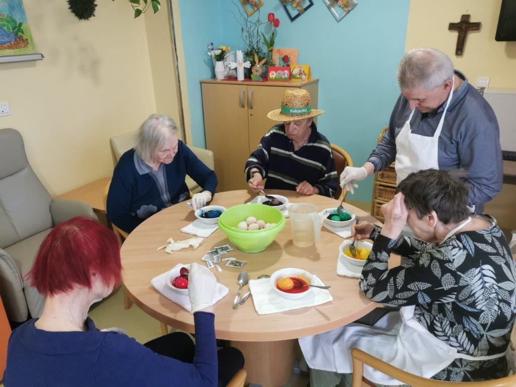 19. april 2022 Velika noč v enoti B2 Z stanovalci enote B2 smo ta teden barvali velikonočna jajčka, pripravili velikonočni kruh ter skuhali šunko in klobase. Pripravljene dobrote smo odnesli k blagoslovu velikonočnih jedi v Voličino.
