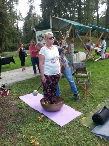 Druga skupina se je odpravila na ogled po kosilu. Stanovalci so sodelovali v delavnici poslikave platnenih vreč, uživali v sproščanju ob gongih, poslužili pa so se tudi odpravljanju negativne energije iz telesa ob poslušanju gongov. Stanovalke so si z veseljem ogledale stojnice z eteričnimi olji in lesenim nakitom. Vsi so preživeli čudovit dan, saj so uživali v lepem jesenskem vremenu.