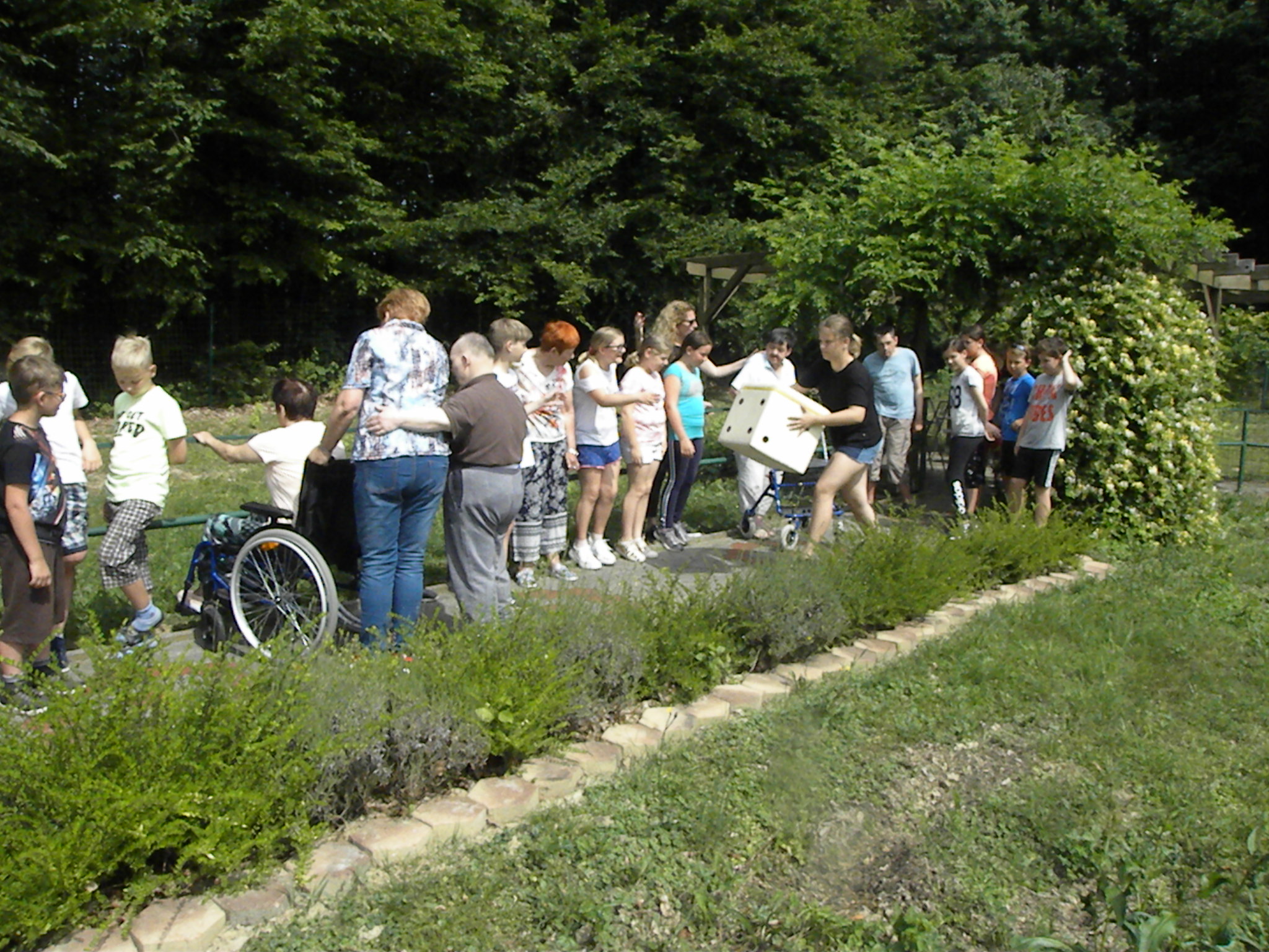 Za otroke se je šolsko leto zaključilo, zato so si vzeli čas in nas obiskali. Vsako leto prihajajo k nam učenci 5. razreda. Tako se iz leta v leto generacije menjavajo. Spremljali sta jih razredničarka 5. razreda in pedagoginja. Poudarek je na sprejemanju drugačnosti in druženje z njimi. Družijo se ob igri »Živi človek ne jezi se«, ki ga igrajo v parku ob hiši. Igra se v mešanih skupinah; otroci in stanovalci. Otroci so bili našim stanovalcem v veliko podporo pri sladkanju s sladoledom in sprehodu po parku. Po otroke so prišli starši, tako so tudi oni podoživeli utrinke druženja med generacijami. Bilo je prav prijetno.
