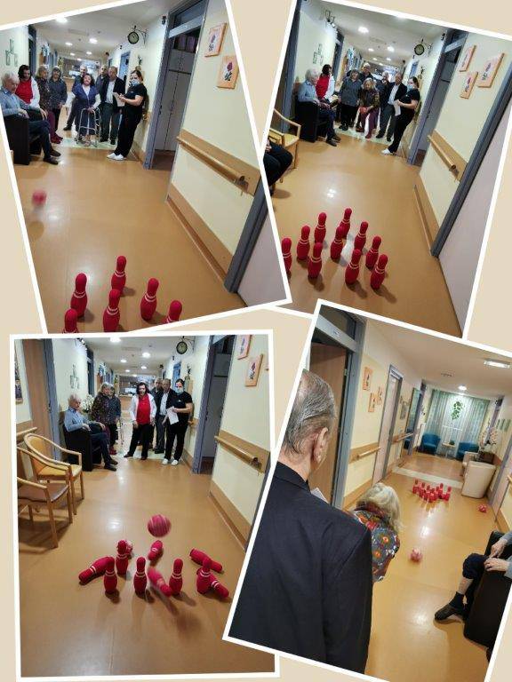 5. oktober 2020 SVZ Hrastovec Podiranje kegljev Deževno ponedeljkovo dopoldne smo s stanovalci enote B2 preživeli precej družabno in tekmovalno. Na hodniku enote smo si pripravili tekmovanje v podiranju kegljev.