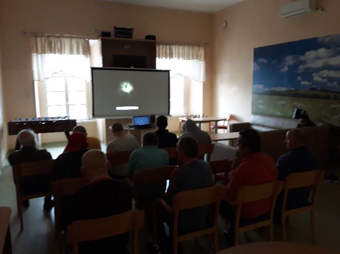 Deževen in turoben popoldan smo stanovalcem na Varovanem oddelku nekoliko popestrili z ogledom filma. Zanimiv film, predvajan na impresivno velikem ekranu in ob podpori mogočnega zvoka (oboje smo pričarali s pomočjo projektorja) je pritegnil pozornost stanovalcev od začetka do konca. Seveda smo poskrbeli tudi za zvrhano mero sveže pečenih kokic, ki sodijo zraven.