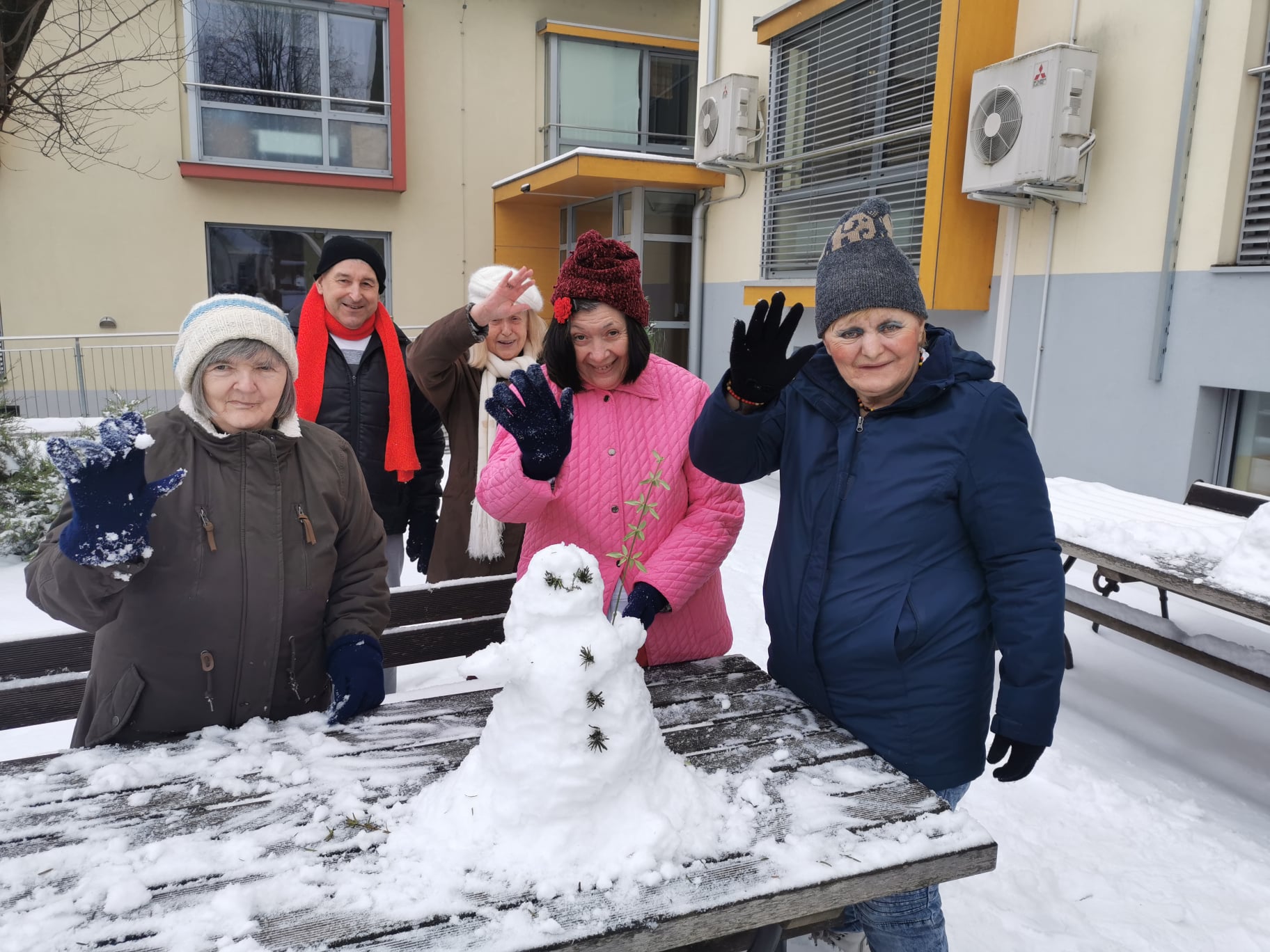 3. december 2020 SVZ Hrastovec Prvi sneg, prvi snežak Majhen, ampak naš prvi letošnji Snežak, izpred depandanse B2.