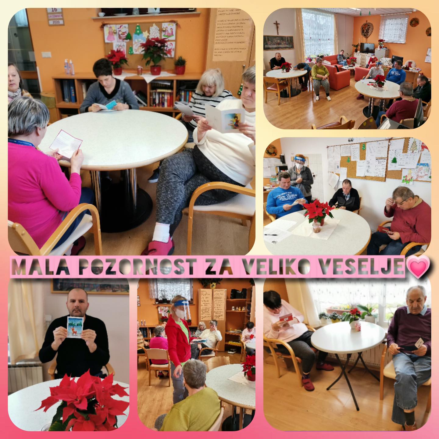 Na nas se spomnijo tudi drugi. V tem tednu smo v DBE Apače imeli prav posebno skupnost stanovalcev. V okviru medgeneracijskega projekta "MALA POZORNOST ZA VELIKO VESELJE" je vsak stanovalec prejel voščilnico z lepo mislijo, verzom ali željo. Voščila smo si skupaj prebrali ter se s toplino v srcu zavedali, da tam nekje nekdo misli na nas. Zato, hvala vsem vam in vsakemu posebej.