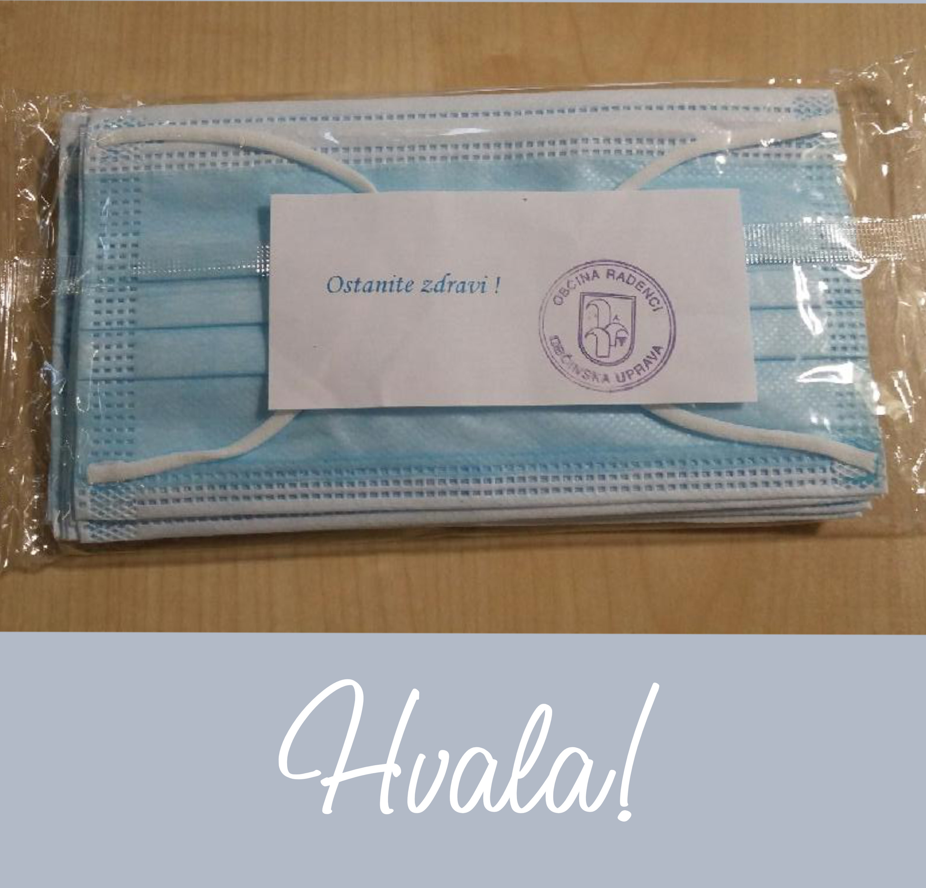 Lep občutek je, ko veš da se nekdo spomni na nas. Ta teden nas je v poštnem nabiralniku presenetil paket kirurških mask, ki nam jih je podarila Občina Radenci. Čeprav v zavodu poskrbijo, da imamo na enoti dovolj zaščitne opreme, smo bili mask zelo veseli. Zahvaljujemo se županu Romanu Leljaku za prijazno gesto. Ko se bodo razmere umirile, bomo na občini kot vsako leto do sedaj, s stanovalci obiskali župana in direktorico OU Mojco Marovič, ki sta nas vedno lepo sprejela in pogostila.