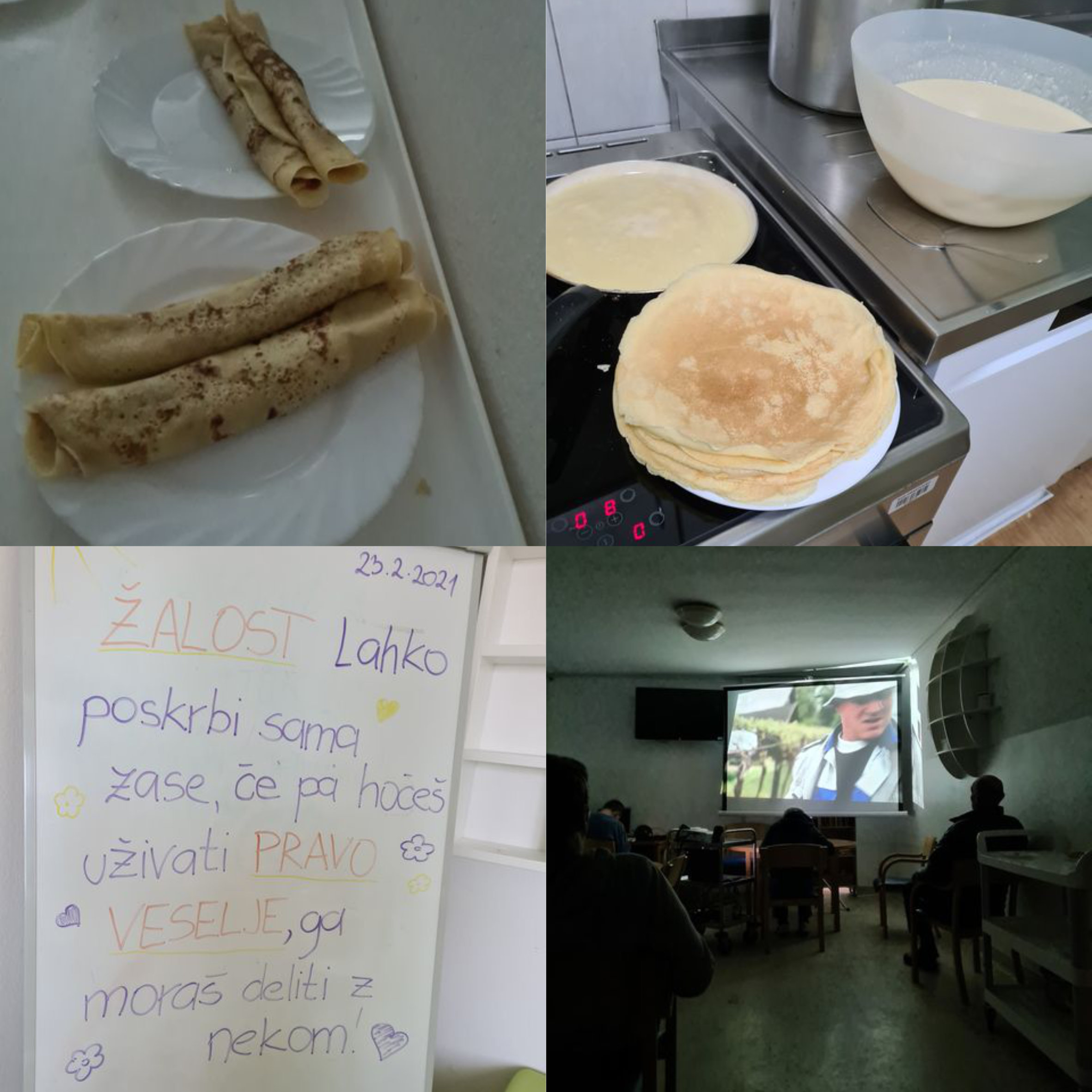 Na enoti D1 je ponovno zadišalo in završalo. Oglasno tablo smo posvetili lepim mislim, ki nam polepšajo dan, v okviru kuharske delavnice smo spekli palačinke in si jih privoščili ob ogledu radgonskega filma Oto na velikem platnu. Stanovalci so bili nad ogledom filma v pravem kino vzdušju navdušeni.