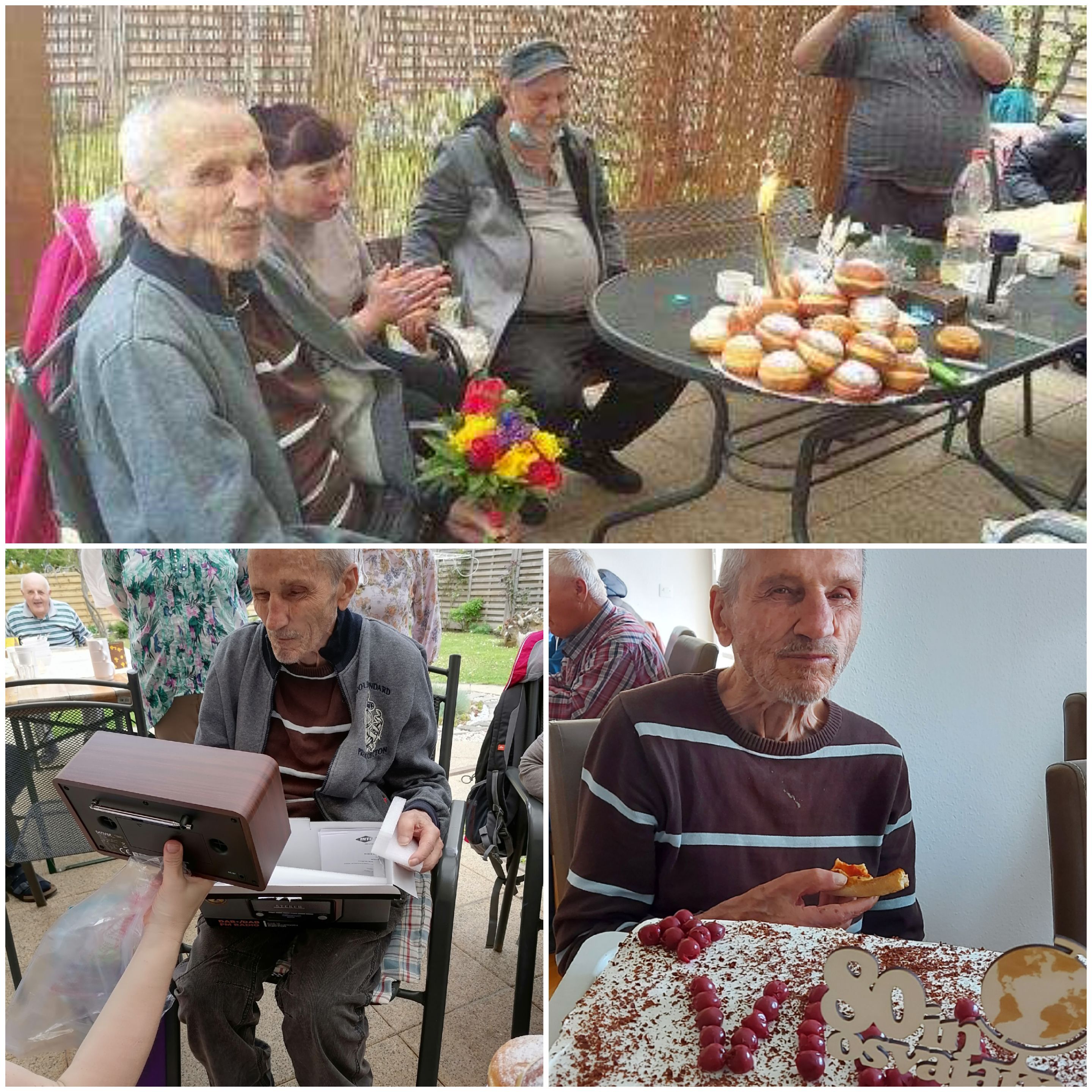 Danes je bil v DBE Maribor prav poseben prazničen dan. Ne samo zaradi samega praznika, temveč zato, ker naš g. Vili Bergles praznuje visoki jubilej - 80 let. Ker ima g. Vili zelo rad krofe, so mu jih v ta namen v hiši spekli in iz njih naredili torto. Stanovalci in delavci pa smo ga presenetili z radiem, ki si ga že dolgo želel.