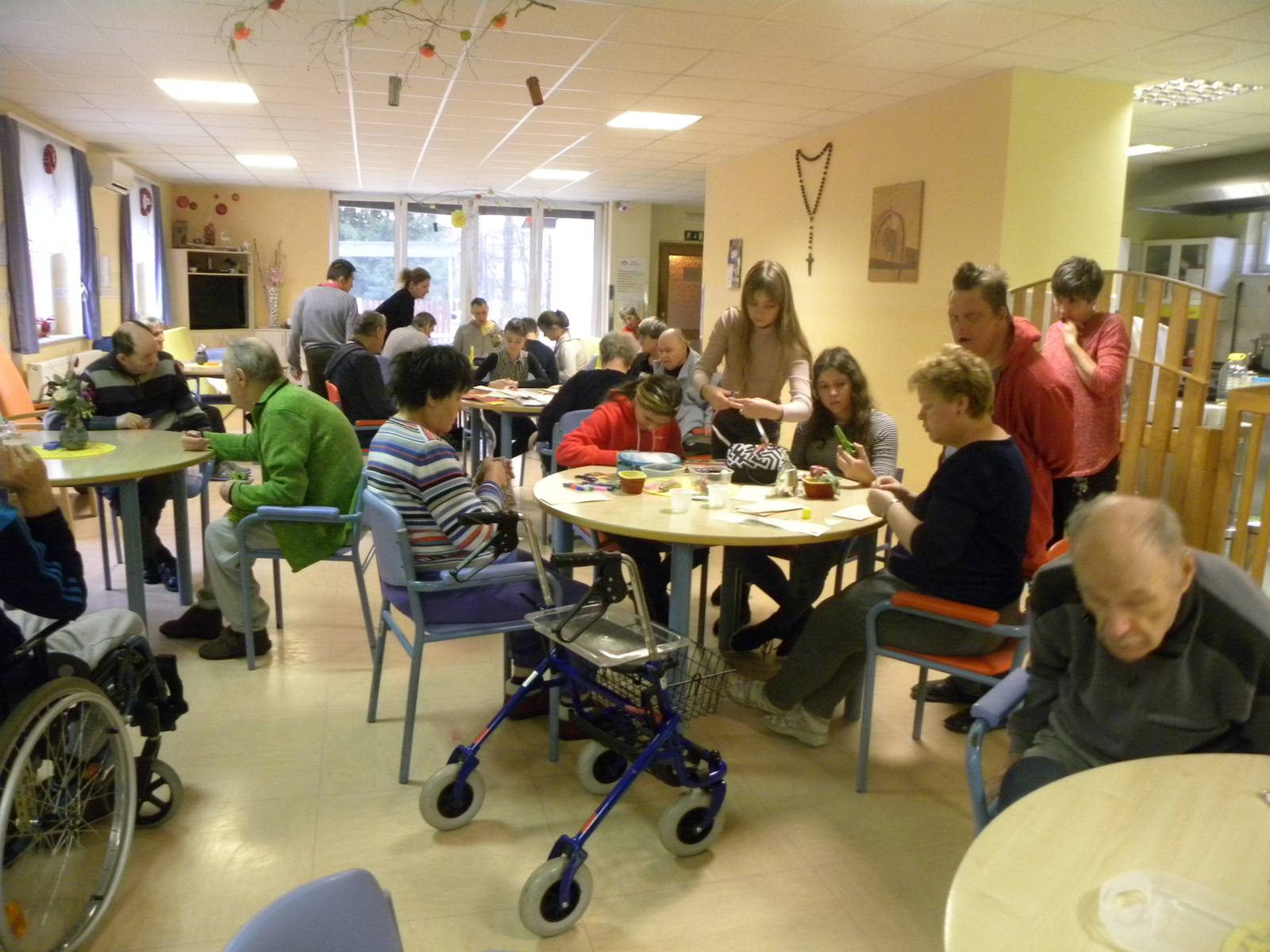 Ponovno nas je obiskala skupina otrok iz OŠ Sv. Ana. Skupaj so izdelovali novoletne voščilnice. Otroci so se razdelili po skupinah s stanovalci, ki so jim pomagali po svojih močeh. Stanovalci, ki ne zmorejo ustvarjati, so poslušali zgodbice, ki so jim brali otroci. Zraven so imeli tudi harmonikarja, ki je poskrbel za veselo vzdušje. Ob glasbi se je tudi zaplesalo. Spremljala jih je pedagoginja Petra in ga. Morina. Dogovorili smo se za nadaljnja druženja.